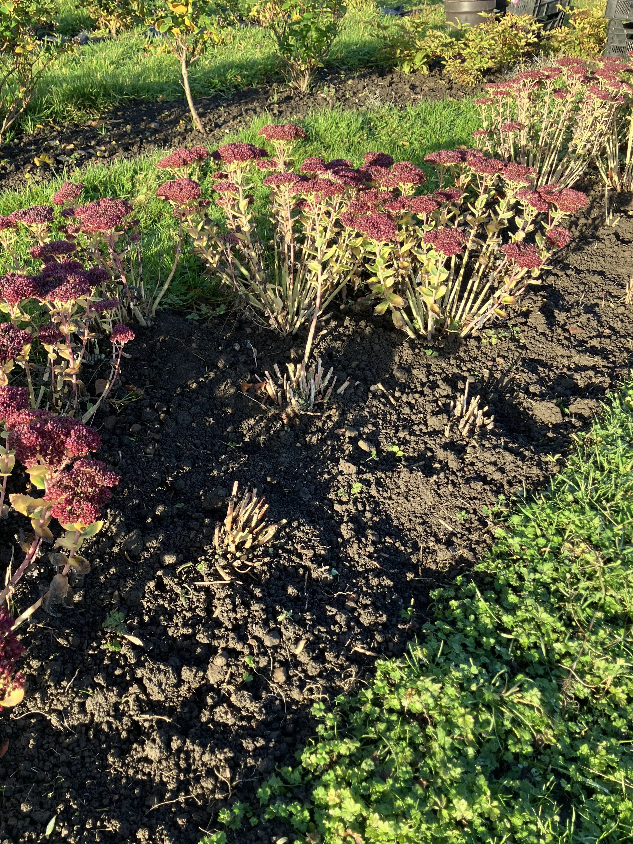 Autumn is a very busy time in the garden. We have moved some shrubs to make way for some more bare root roses, so we will have two full beds full of cutting roses ready for our 2026 weddings. We have also lifted and divided our Sedum plants. We decided to widen the sedum bed and make more plants for free by division.